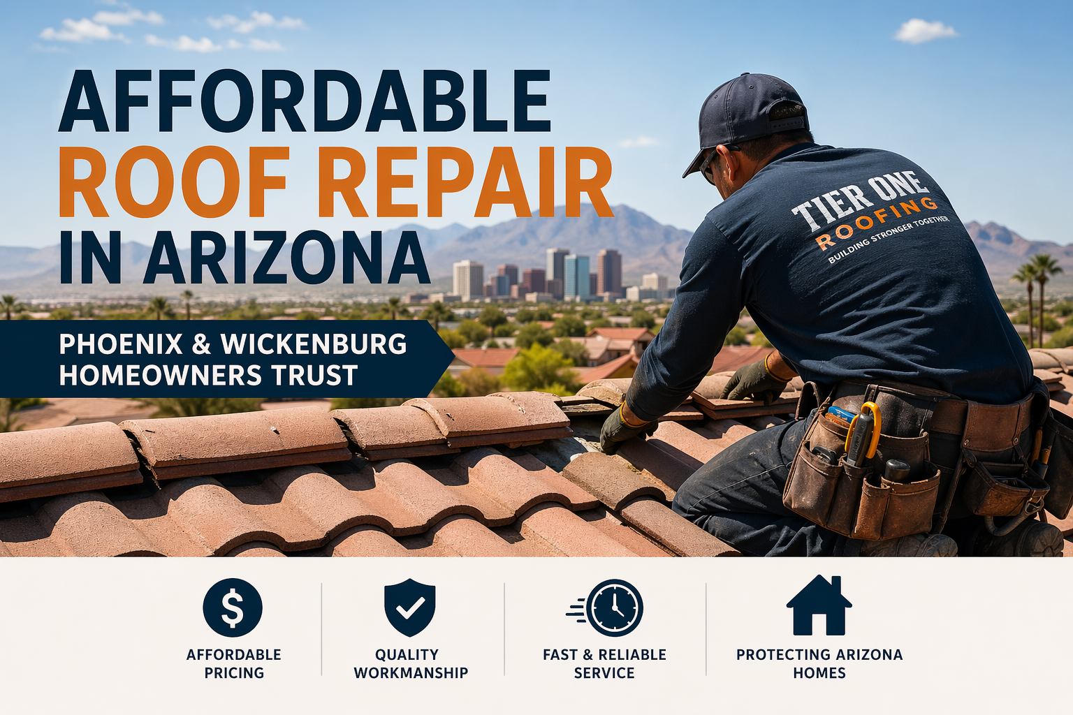 Tier One Roofing & Construction serves Arizona homeowners and businesses with reliable roofing services in Phoenix, Wickenburg, Surprise, and surrounding communities.